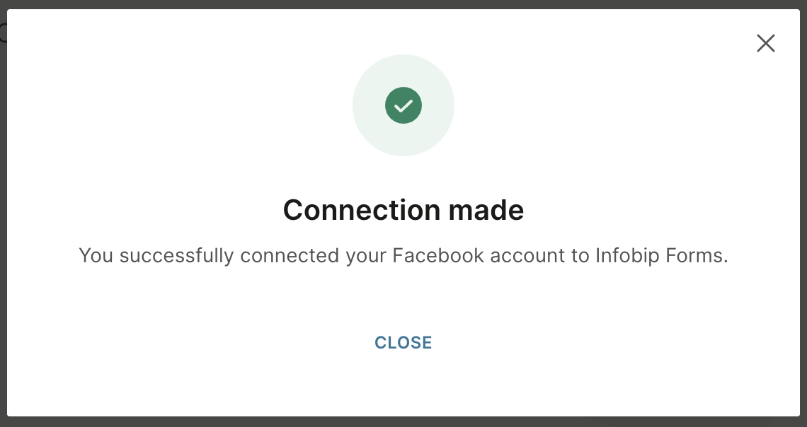 Once the connnection is established you will see a success message that your Facebook account has been connected to Infobip Forms.
