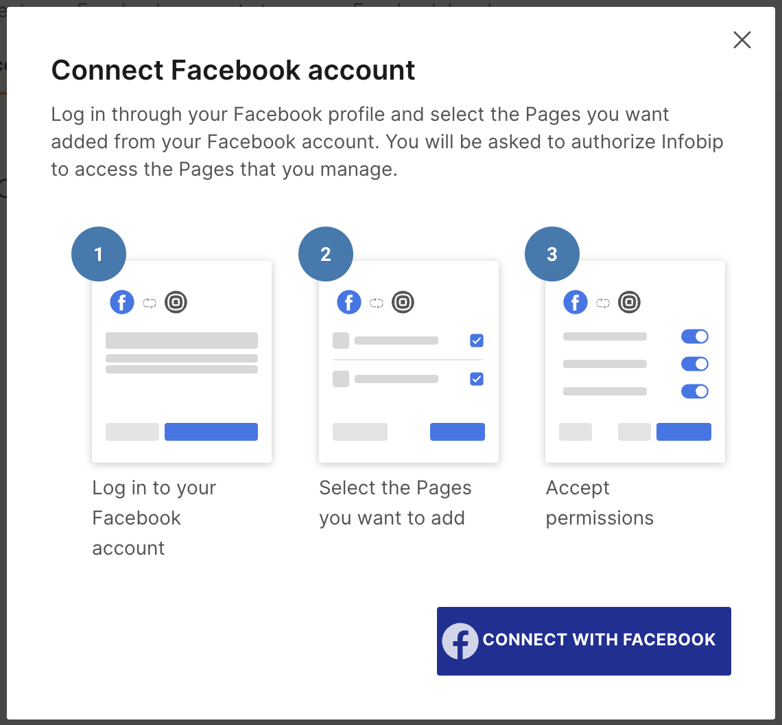 Connect your Facebook business account and define your processing rules in your Infobip environment.