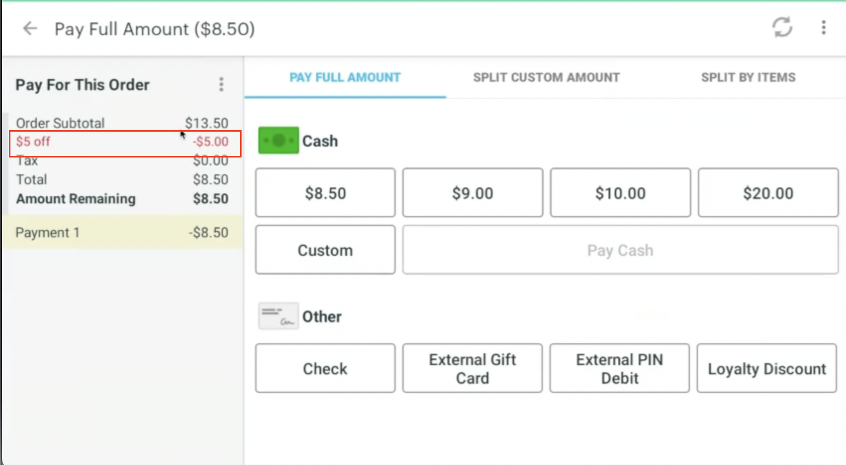 To change the applied reward, click on the “Loyalty Discount” again and switch the reward.