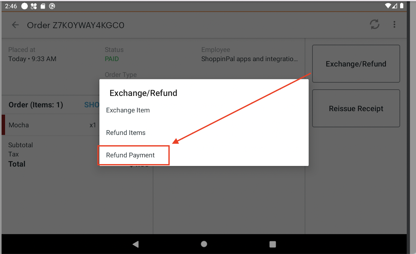 Please note that using this menu, the checks can also be updated using “Exchange Items” and “Refund Items” options. We do not support Partial Refunds. So, “Exchange items” and “Refund Items” are treated the same way the “Refund Payment” - i.e. we reverse any points accrued and reward redeemed on the order.