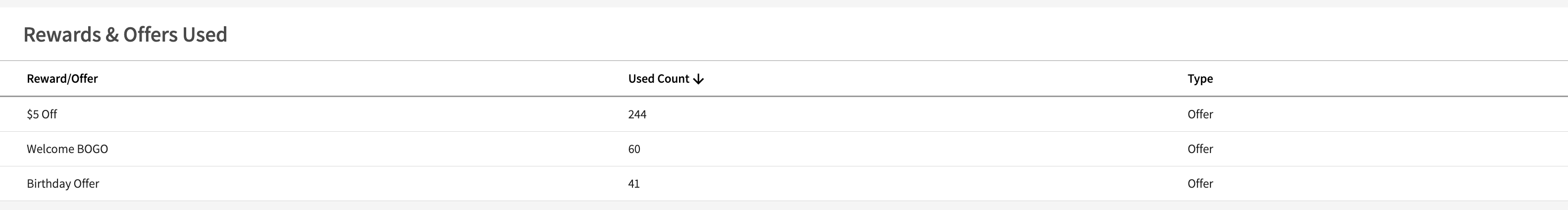 Rewards/Offers — An side by side look at the performance of your active rewards and offers.