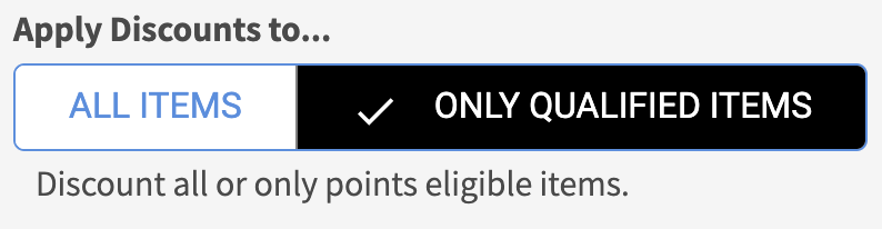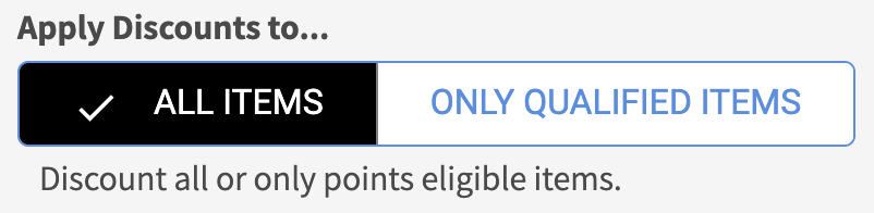 Additionally, you can configure your loyalty rules to allow discounts on all items or only on items that are set to earn points. This provides flexibility in how discounts and point eligibility work together within your program.