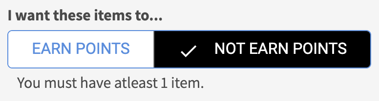If set to earn points, any item not on the list will not earn points.