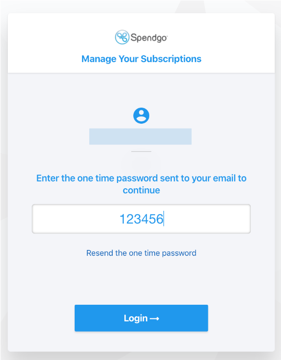 Enter your account billing email and continue. You will be sent a one-time password to that email. The one-time password is valid for 5 minutes from the time it is generated.