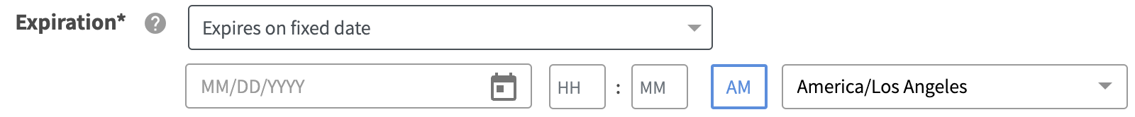 Expires on fixed date will expire on a fixed date and time in the future.