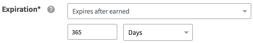 Set the offer Expiration to Expires 365 days after earned.