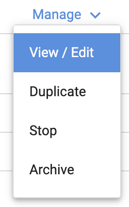 Quickly copy an existing campaign’s settings for reuse.Stop a Campaign